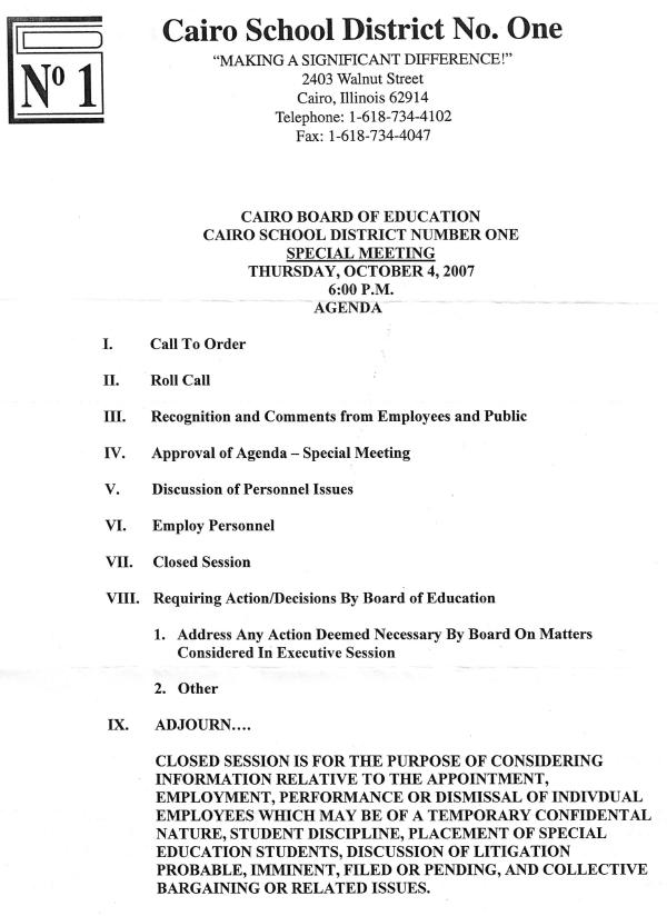 At the September regular meeting of the Cairo Board of Education, a motion was made to employ Larry Baldwin as Head Boys Basketball Coach for CHS...a motion that failed due to a 3-3 vote. Burris, Mallory, and Stubblefield voted to employ Mr. Baldwin, while Brown, Mayberry, and Gooden voted "NO". Mary Coleman was absent for that meeting.