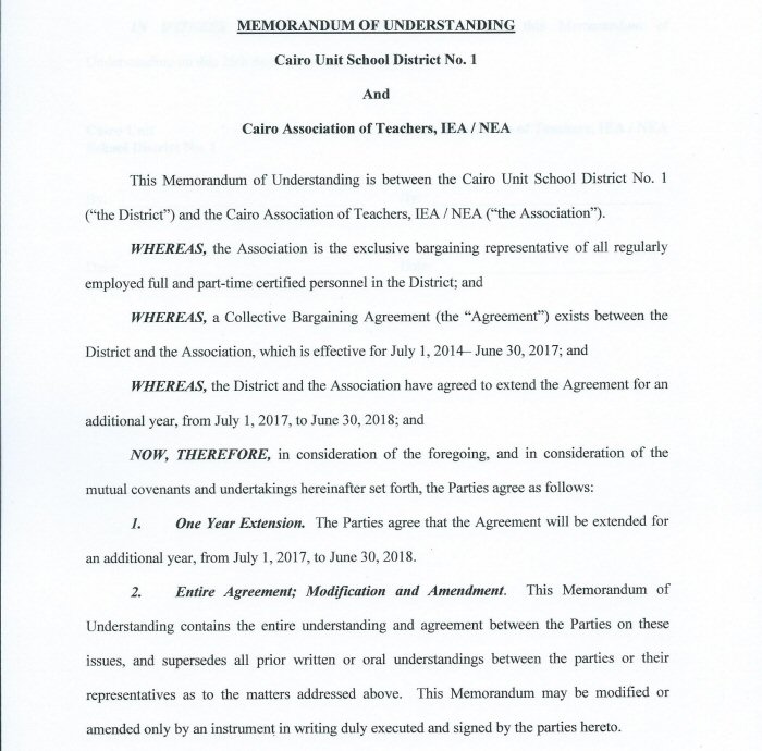 Cairo Association of Teachers - Memorandum of Agreement
