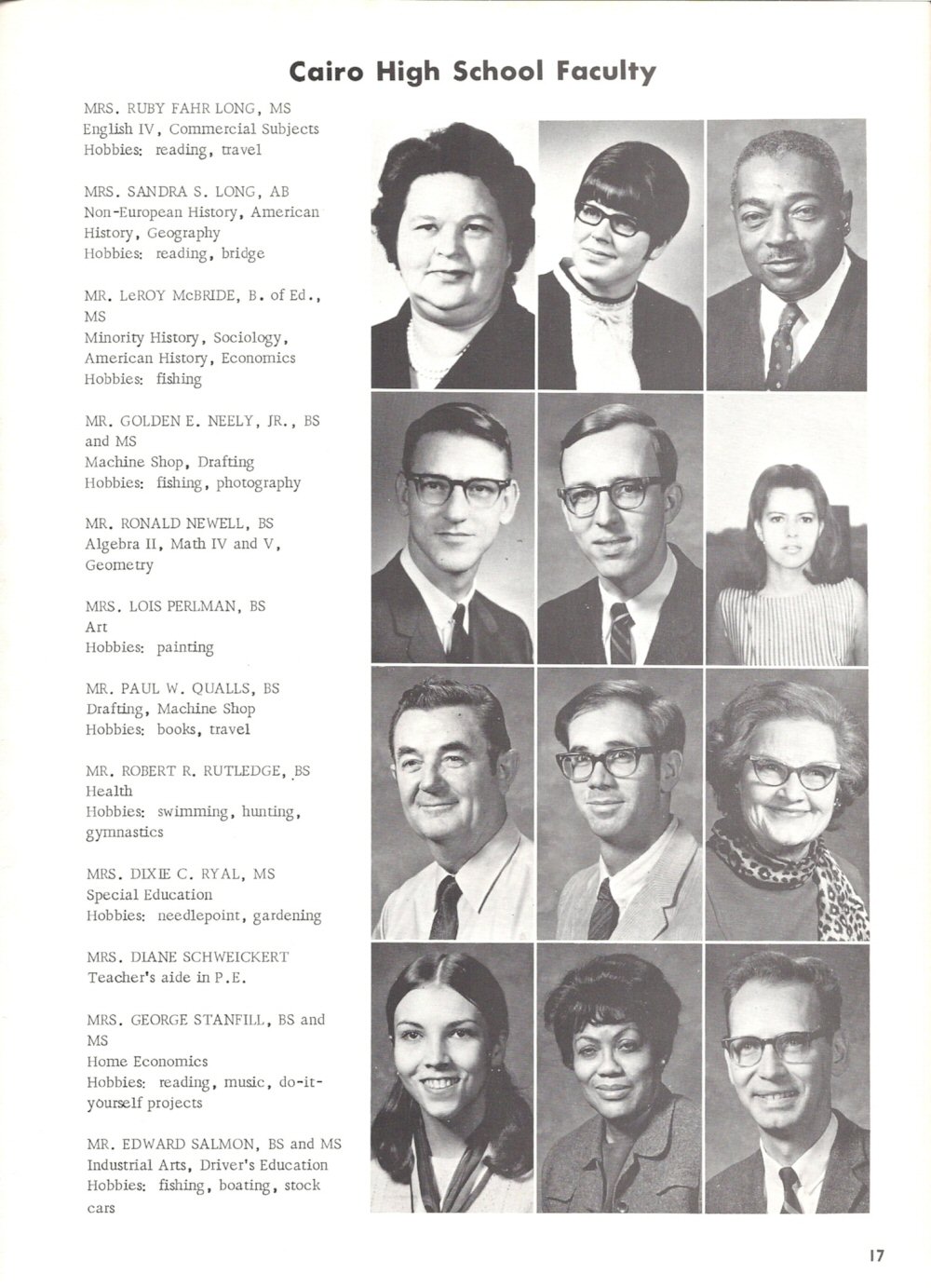 The administration, faculty, and staff of Cairo High School in 1970...the conclusion of my first year of teaching..."Genesis" if you will!