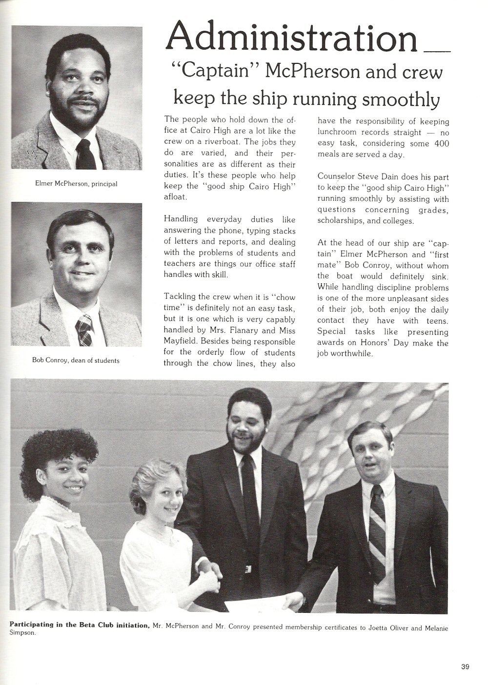 Appearing on the Cairo High School stage for the first time in 1984-1985 were: