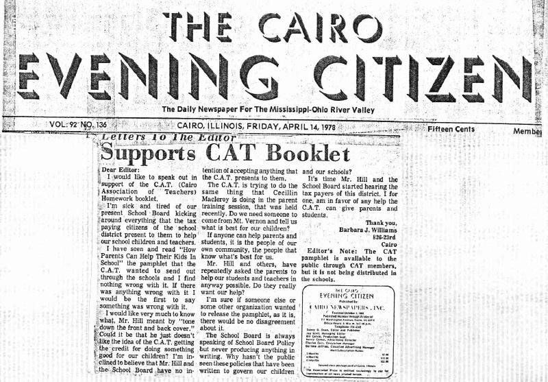 Was it a preview of "coming attractions"? Was it an omen of what proved to be a "dysfunctional District"? In April 1978 - 4 months before the recognition strike - the District refused to distribute a handbook prepared by the CAT. A citizen expressed her views...