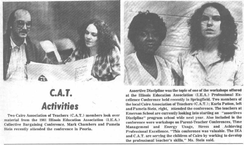 Notice the "union shirts" worn by most of the members in the picture below. THAT...young CATs...explains why our web page is published in yellow. The original "CAT Colors" were yellow and black. In later years, we reverted to the traditional "blue and white" for strike garb...probably because whoever got the shirts printed DID NOT KNOW THEIR HISTORY!
