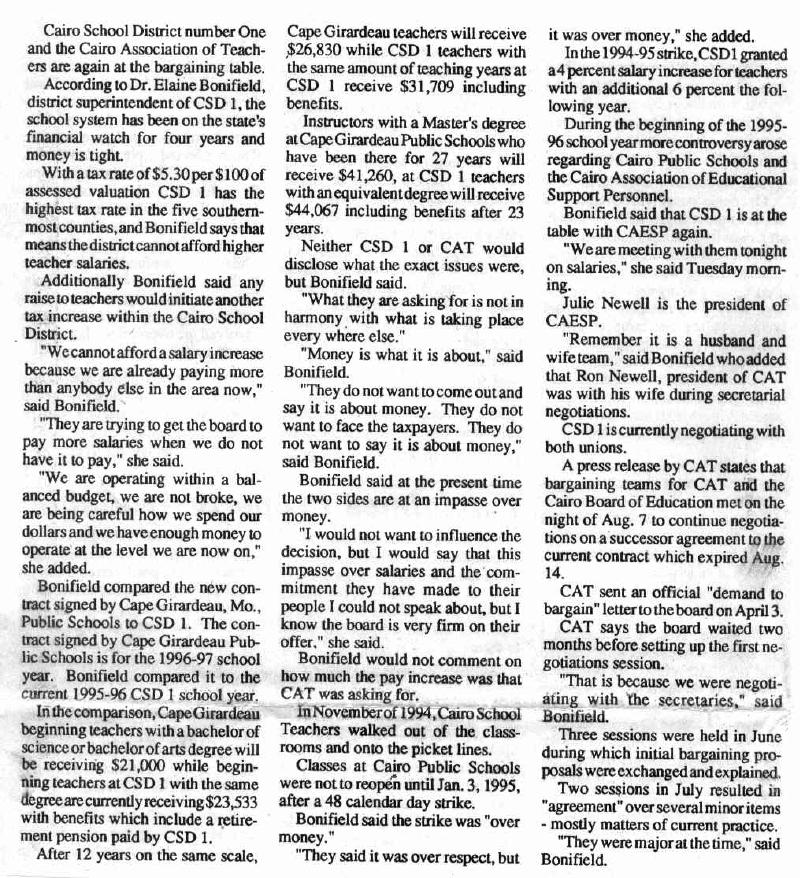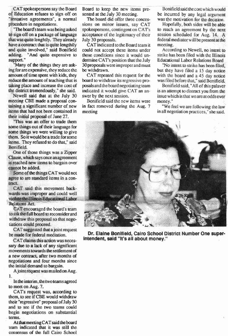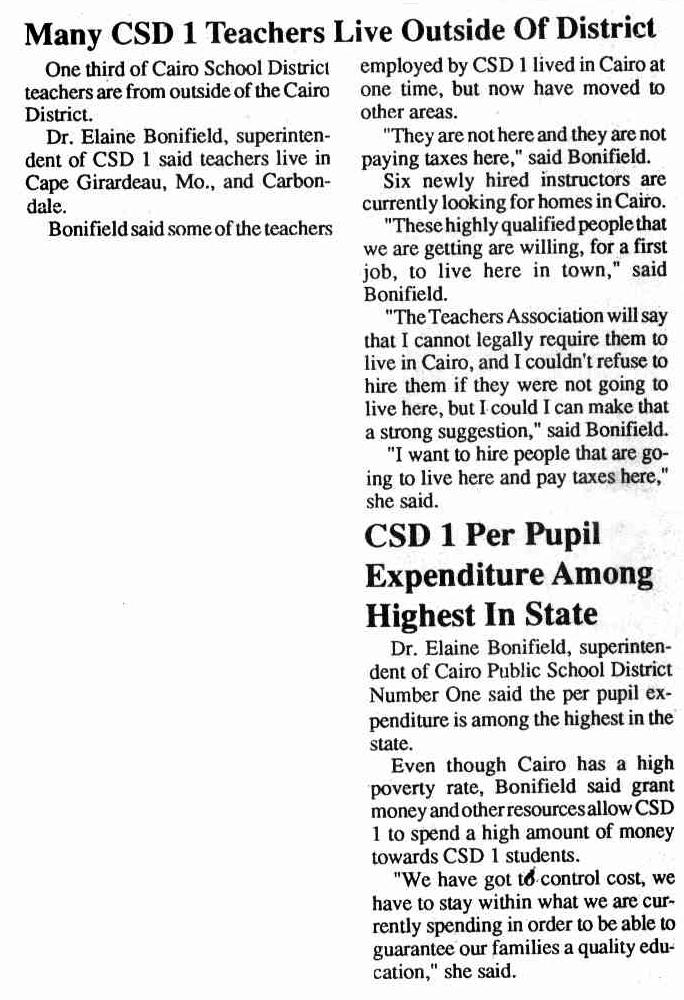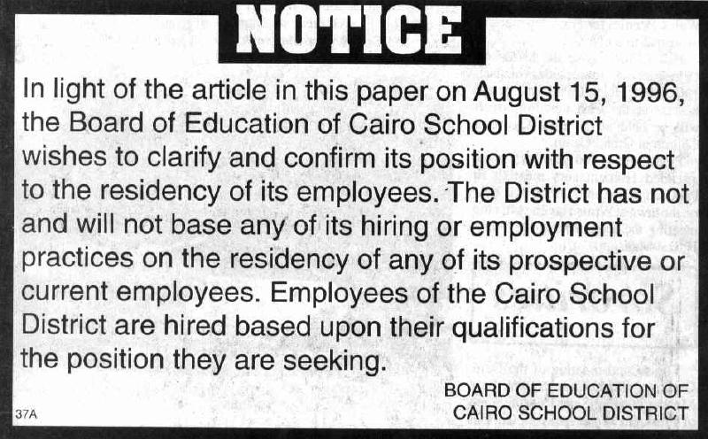 The comments by the superintendent about giving "a strong suggestion" for hiring people "willing" to live in Cairo - in violation of Illinois law - prompted the following press release by the Board of Education...