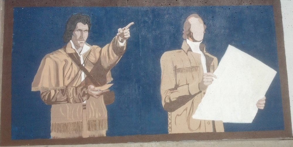 (Actually, a friend e-mailed me that surely something would be added to the mural...something to "fill in" the blank white map being held by the dude on the right. (William Clark?)