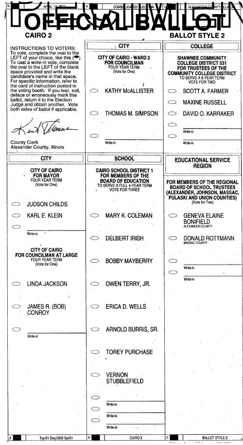 CAIRO GENERAL ELECTION BALLOT - WARD 2