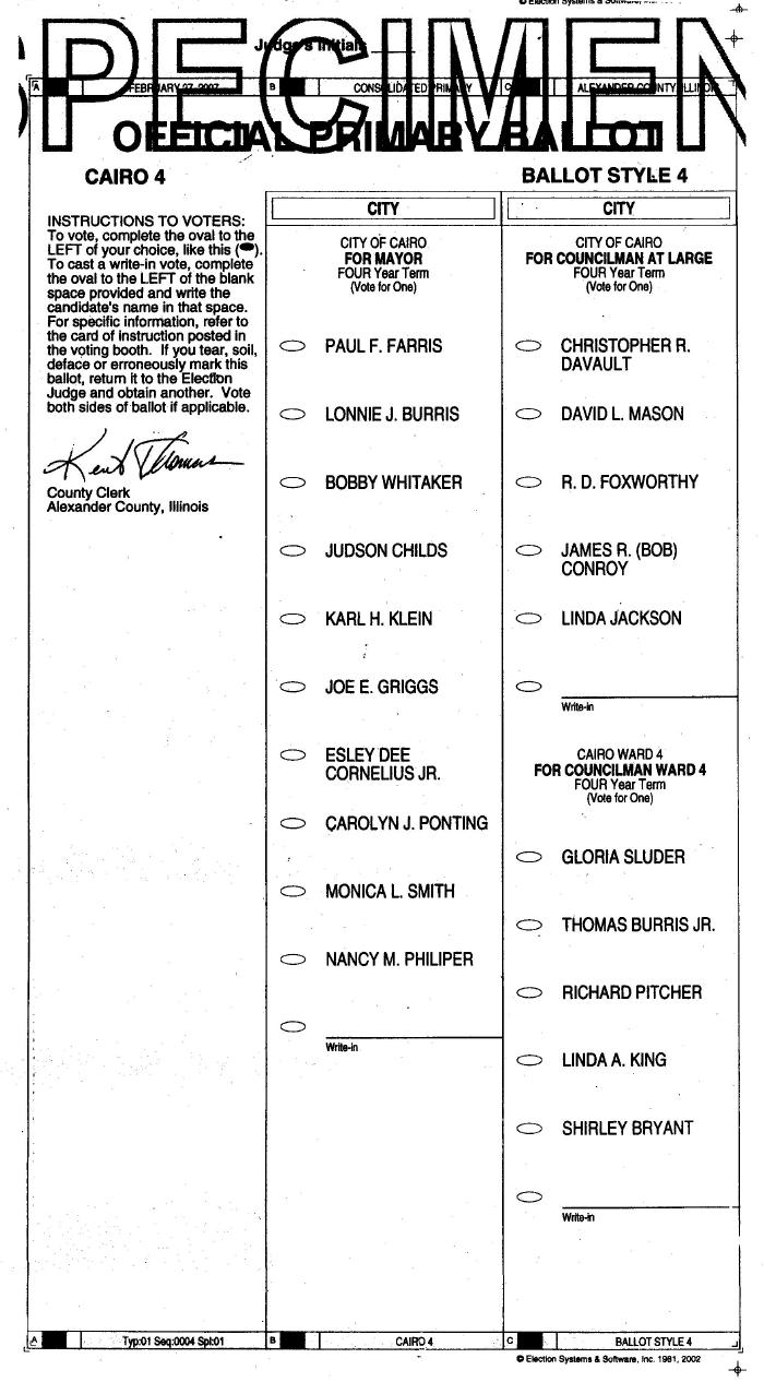 CAIRO PRIMARY BALLOT - WARD 4