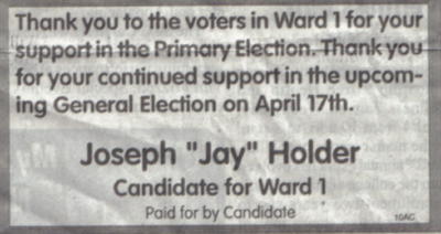 JOSEPH "JAY" HOLDER "THANK YOU" AD